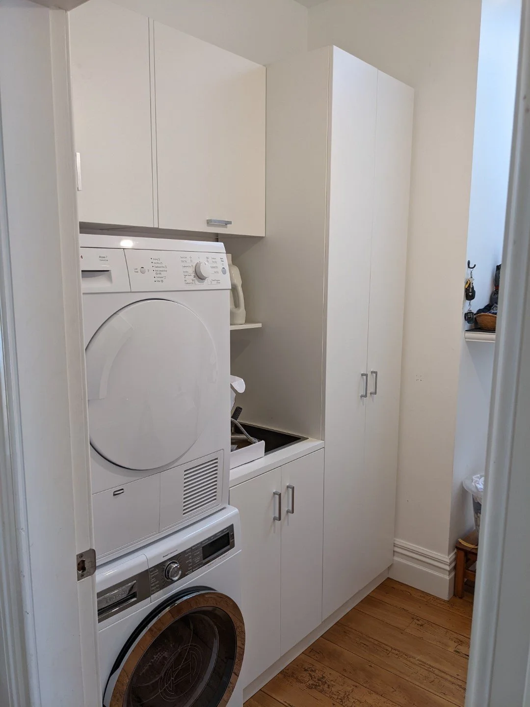 Organisation: With built-in storage options like drawers, shelves and cabinets, you can keep your laundry supplies and essentials neatly organised.